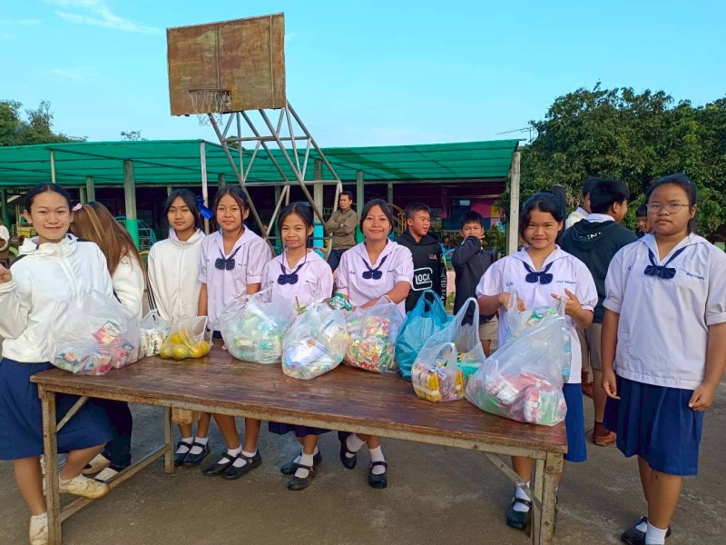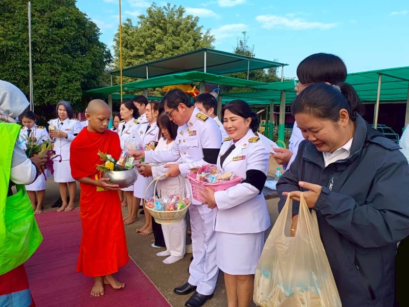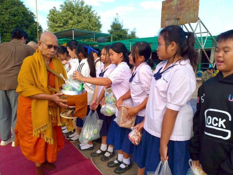 เมื่อวันที่ 5 ธันวาคม พ.ศ. 2568 นางสาววารินทร์ หยุมปัญญา รองผู้อำนวยการโรงเรียนชุมชนบ้านป่าไผ่ คณะครูและบุคลากรทางการศึกษา และนักเรียน โรงเรียนชุมชนบ้านป่าไผ่ ร่วมกิจกรรมทำบุญตักบาตรข้าวสารอาหารแห้ง แก่พระภิกษุสงฆ์ จำนวน 10 รูป เนื่องในวันพ่อแห่งชาติ ประจำปี 2568 อำเภอลี้ เพื่อน้อมรำลึกในพระมหากรุณาธิคุณในพระบาทสมเด็จพระบรมชนกาธิเบศร มหาภูมิพลอดุลยเดชมหาราชบรมนาถบพิตร (รัชกาลที่ 9) ณ สนาม โรงเรียนชุมชนบ้านป่าไผ่ |