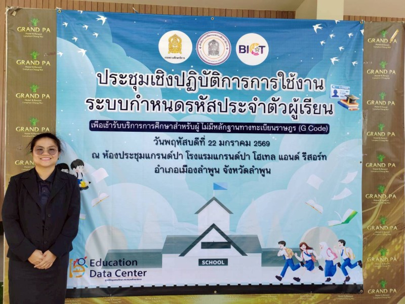 เมื่อวันที่ 22 มกราคม พ.ศ. 2569 ว่าที่ร้อยตรีอานนท์ หล้าหนัก ผู้อำนวยการโรงเรียนชุมชนบ้านป่าไผ่ มอบหมายให้นางสาวดลพร อุตสาหพันธ์ ครูโรงเรียนชุมชนบ้านป่าไผ่ เข้าร่วมการประชุมปฏิบัติการใช้งาน ระบบกำหนดรหัสประจำตัวผู้เรียน เพื่อเข้ารับบริการทางการศึกษา สำหรับนักเรียนที่ไม่มีหลักฐานทางทะเบียนราษฎร์ (G-Code) ณ โรงแรมแกนด์ปา โฮเทล แอนด์ รีสอร์ท จังหวัดลำพูน |