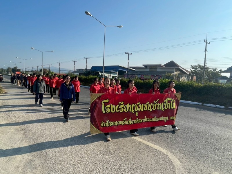 เมื่อวันที่ 3 กุมภาพันธ์ พ.ศ. 2569 ว่าที่ร้อยตรีอานนท์ หล้าหนัก ผู้อำนวยการโรงเรียนชุมชนบ้านป่าไผ่ พร้อมด้วย นายณัฐดนัย อุดหนุน นางสาวจตุพร กันทากาศและ นางสาวดลพร อุตสาหพันธ์ ครูโรงเรียนชุมชนบ้านป่าไผ่ ได้นำดุริยางค์ และนักเรียนระดับชั้นมัธยมศึกษา เข้าร่วมเดินรณรงค์งดการเผ่า ลดหมอกควัน และฝุ่น PM.2.5 ณ เทศบาลตำบลป่าไผ่ |
