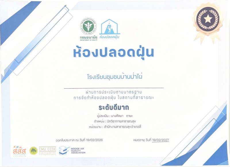 เมื่อวันที่ 2 มีนาคม พ.ศ. 2569 นางสาววารินทร์ หยุมปัญญา รองผู้อำนวยการโรงเรียนชุมชนบ้านป่าไผ่ พร้อมด้วยนายศุภวิชญ์ มูลชนะ ครูโรงเรียนชุมชนบ้านป่าไผ่ ได้เข้าร่วมรับเกียรติบัตรรางวัล ห้องปลอดฝุ่น พร้อมกันนี้ได้เข้าร่วมในการประชุมหัวหน้าส่วนราชการอำเภอลี้ ประจำเดือนมีนาคม 2569 ณ หอประชุม ที่ว่าการอำเภอลี้ |