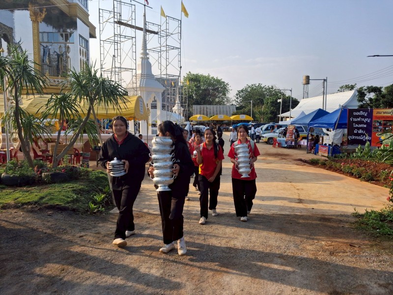 นำนักเรียนระดับมัธยมศึกษาโรงเรียนชุมชนบ้านป่าไผ่ เข้าร่วมงานบวงสรวงสมโภชพระจุฬามณีเจดียสถาน ในพิธีอัญเชิญ