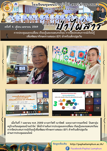 การประชุมแลกเปลี่ยนเรียนรู้และถอดบทเรียน การจัดประสบการณ์เรียนรู้ เพื่อพัฒนาทักษะทางสมอง (EF) สำหรับเด็กปฐมวัย