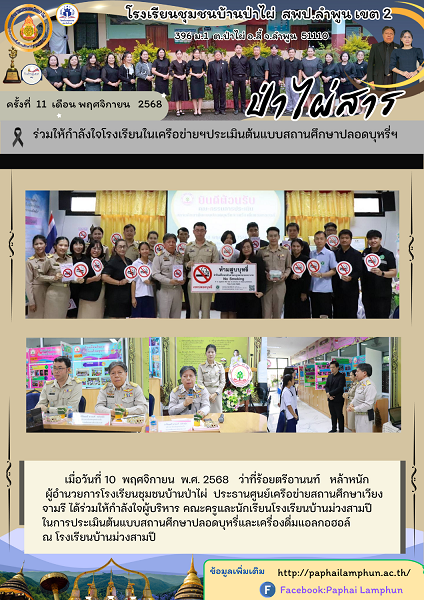 ร่วมให้กำลังใจโรงเรียนในเครือข่ายฯประเมินต้นแบบสถานศึกษาปลอดบุหรี่ฯ