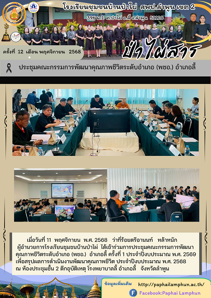 ประชุมคณะกรรมการพัฒนาคุณภาพชีวิตระดับอำเภอ (พชอ.) อำเภอลี้