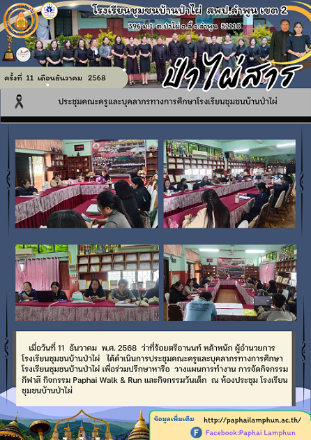 ประชุมคณะครูและบุคลากรทางการศึกษาโรงเรียนชุมชนบ้านป่าไผ่
