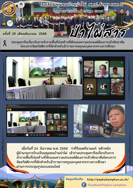 ประชุมหารือเกี่ยวกับการสำรวจพื้นที่ก่อสร้างที่พักและความประสงค์ต้องการเข้าพักอาศัย โครงการจัดสวัสติการที่พักสำหรับข้าราชการครูและบุคลากรทางการศึกษา