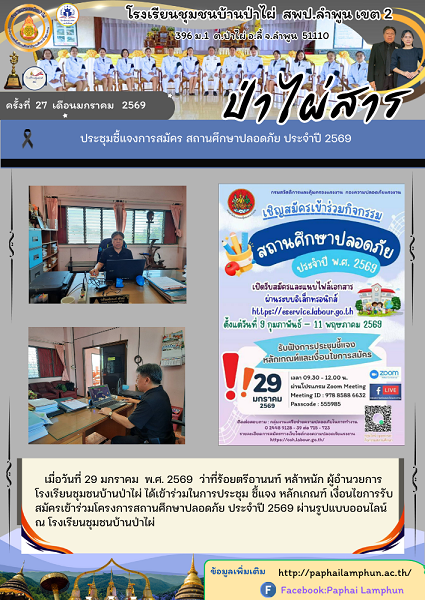 ประชุมชี้แจงการสมัคร สถานศึกษาปลอดภัย ประจำปี 2569